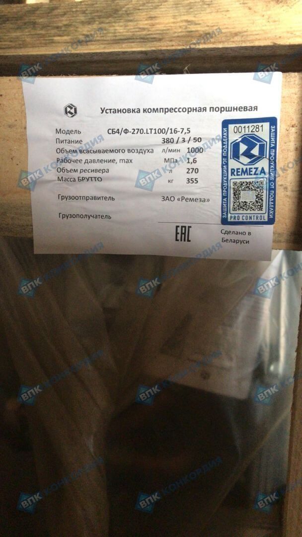 Основные характеристики REMEZA СБ4/Ф-270.LT100/16-7,5